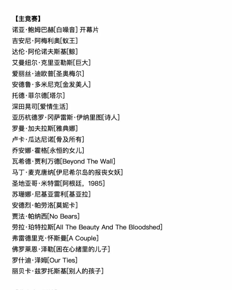 北京时间7月26日,本届威尼斯国际电影节主竞赛单元、地平线单元、非竞赛展映单元等多个单元入围名单正式揭晓。