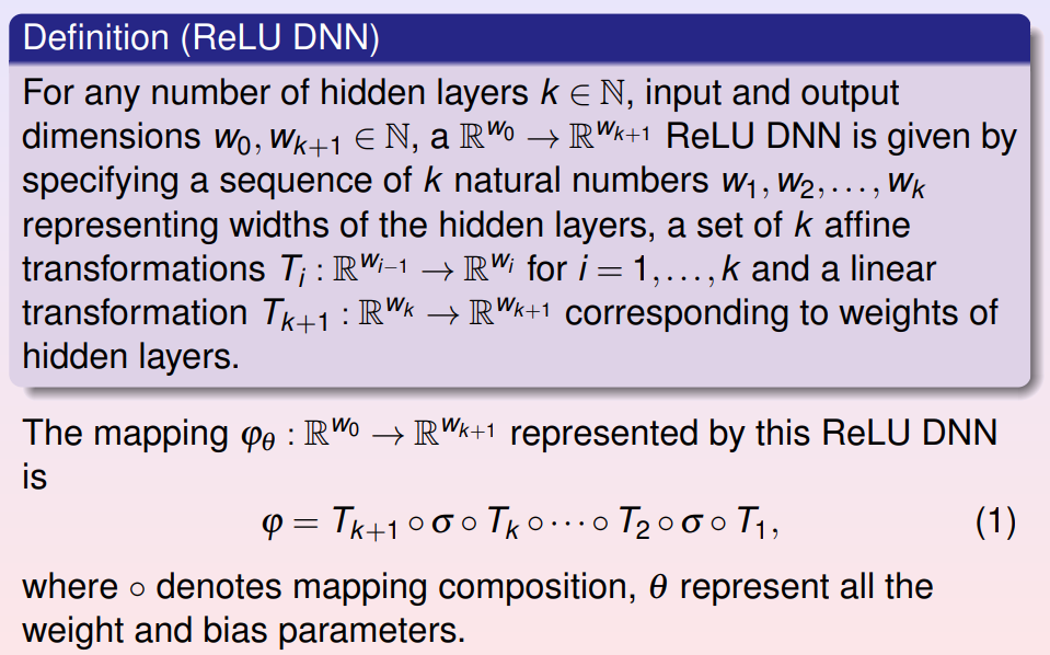 我们可以用ReLU DNN实现这个映射,ReLU DNN是线性变换与ReLU变换的多级复合,整体是一个分片线性映射。