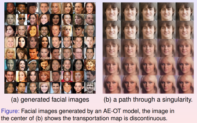 如果最优传输变换存在奇异集合,那么某条线段可能会和奇异集合产生交点,这些交点被映射成人脸图像流形的边界。我们会在边界处看到这样的人脸图像,它们即在生理学上是合理的,但是在现实中碰到的概率为零。