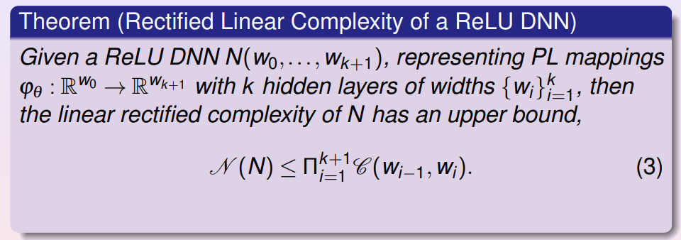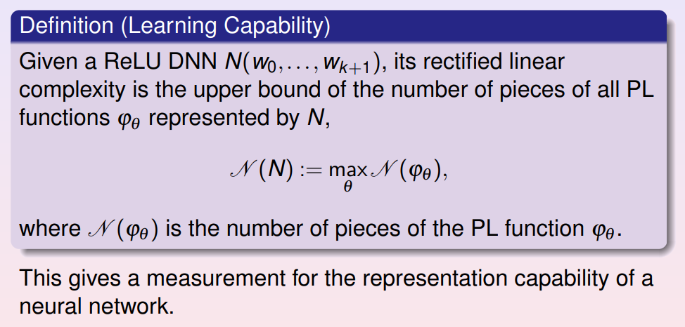 给定一个神经网络,该如何定量地衡量其学习能力?我们可以如下定义深度神经网络的学习能力:神经网络将输入空间进行胞腔分解,胞腔的个数越多,则网络能够表达的映射越非线性。由此,我们可以考察网络可能产生的所有胞腔分解,用胞腔个数的上限来表达网络的其学习能力。