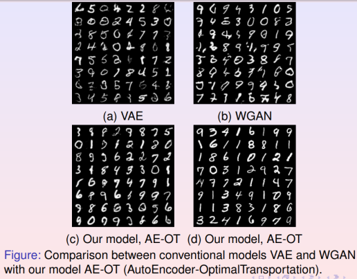 我们用同样的传统算法生成了许多手写体数字图像,它会生成很多乱七八糟的乱码。模式坍塌是目前深度学习领域最大的问题之一。这个问题是由什么引起的呢?我们下面用最优传输理论加以解释。