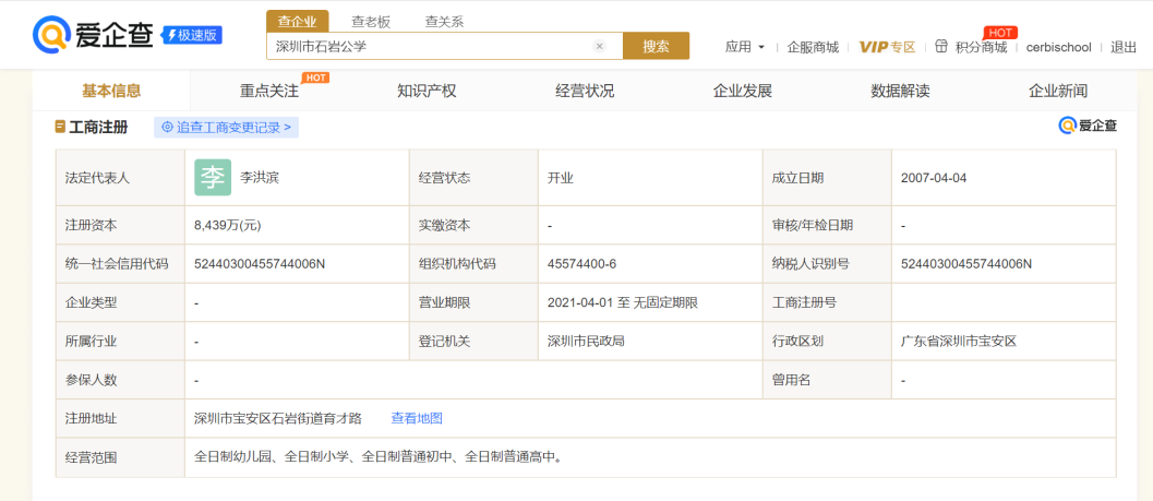 深圳政府在线目前显示深圳市石岩公学学校性质依然是民办