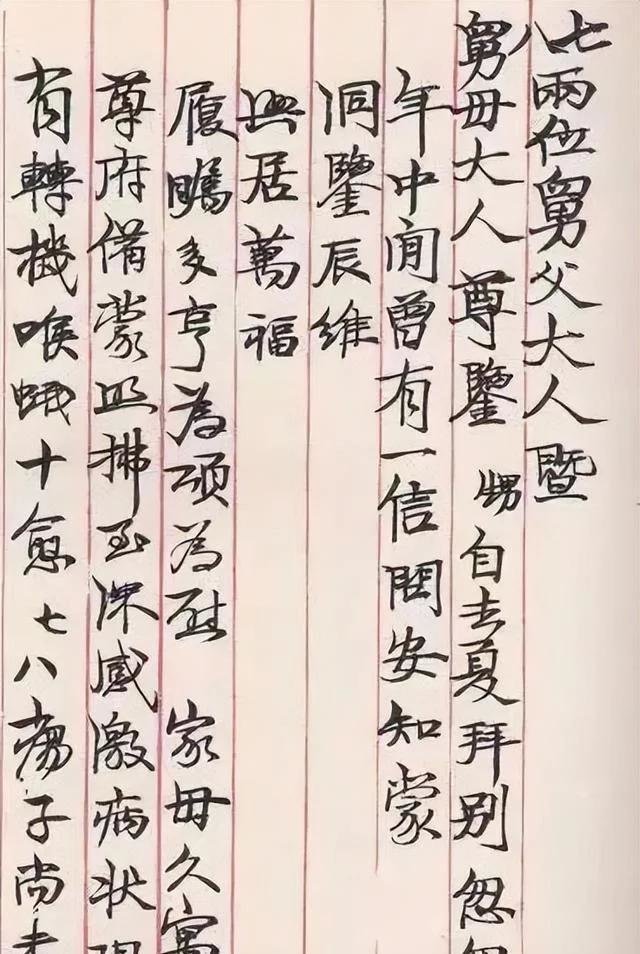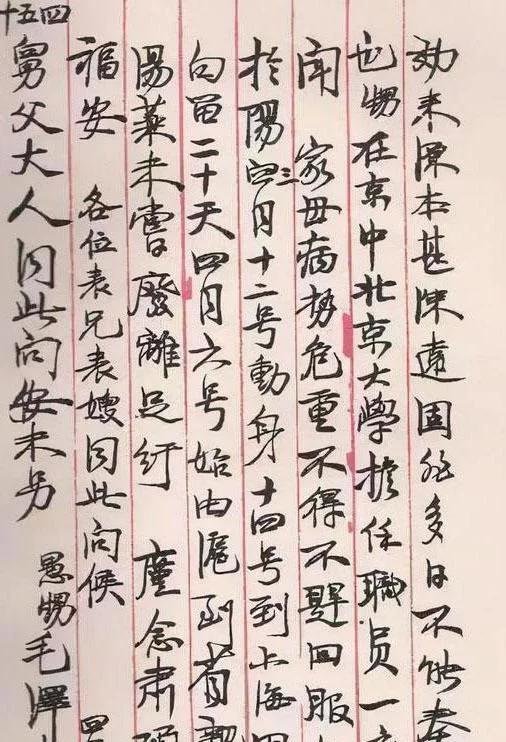 从这封信上的字迹看,这小楷水平,真是没谁了,甚至有不少朋友说道“这字迹真是出自毛主席之手吗?”,不少朋友这样怀疑,这封信是毛主席求学时期写给其学长的一封信,这封信的字迹,尤其是在字形上,更加瘦长,体现了一种高大的特点,这种瘦长之形,在之前毛主席的书法作品上,或者书信作品上,都是很少见到的一种现象。