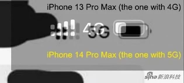 @ShrimpApplePro 也分享了一张号称是iPhone 14 Pro Max的屏幕截图,并在其上面覆盖了iPhone 13 Pro Max的相同截图。图中标注,黑色的5G状态栏图标为iPhone 14 Pro Max,白色的4G状态栏图标为 iPhone 13 Pro Max。
