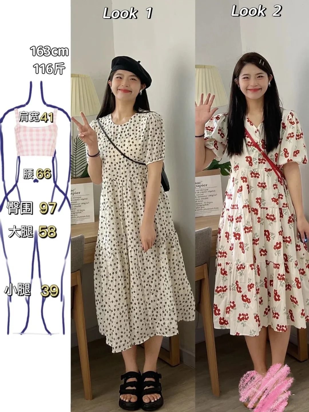 年轻的微胖姑娘,可以多尝试这种简单清爽的搭配。碎花元素的连衣裙,最好能遮住手臂上的拜拜肉,微张的裙摆,最好在过膝的位置,刚好露出纤细的小腿,显得整体穿搭更加轻盈。
