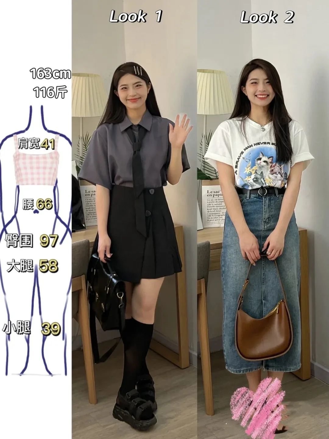微胖的姑娘,双腿一般是比较粗壮的。这时候建议大家多选择一些高腰的半身裙,裙子最好选择过膝长度的半身裙,可以自然地遮盖大腿的肉肉,显得整体穿搭更加的轻盈时尚。
