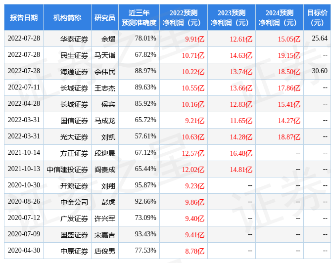 以下是详细的盈利预测信息: