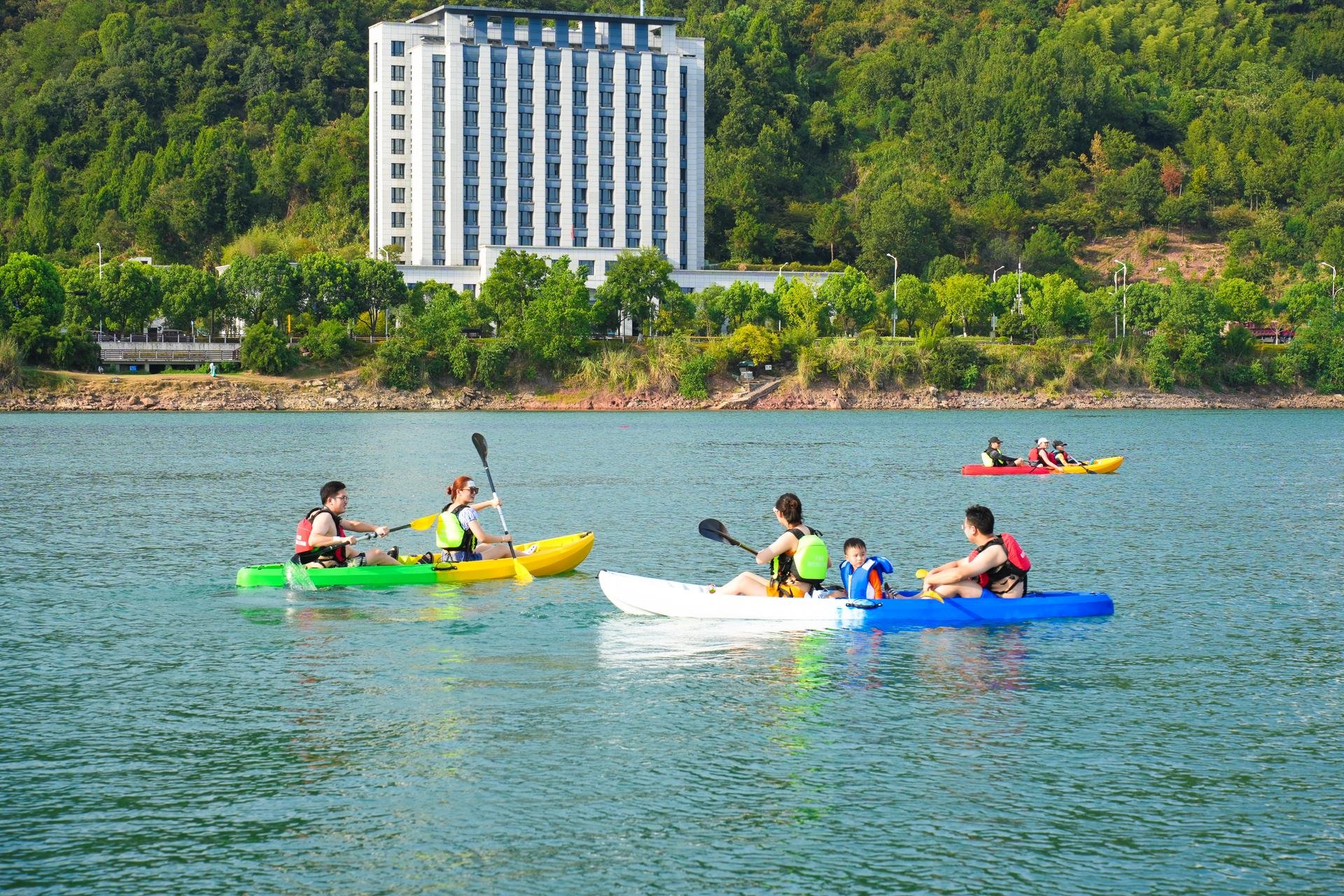 动感皮划艇,在千岛湖湖水中,悠闲的手持划桨,见证青绿色的千岛湖水,饱览大小不一的水上岛屿。
