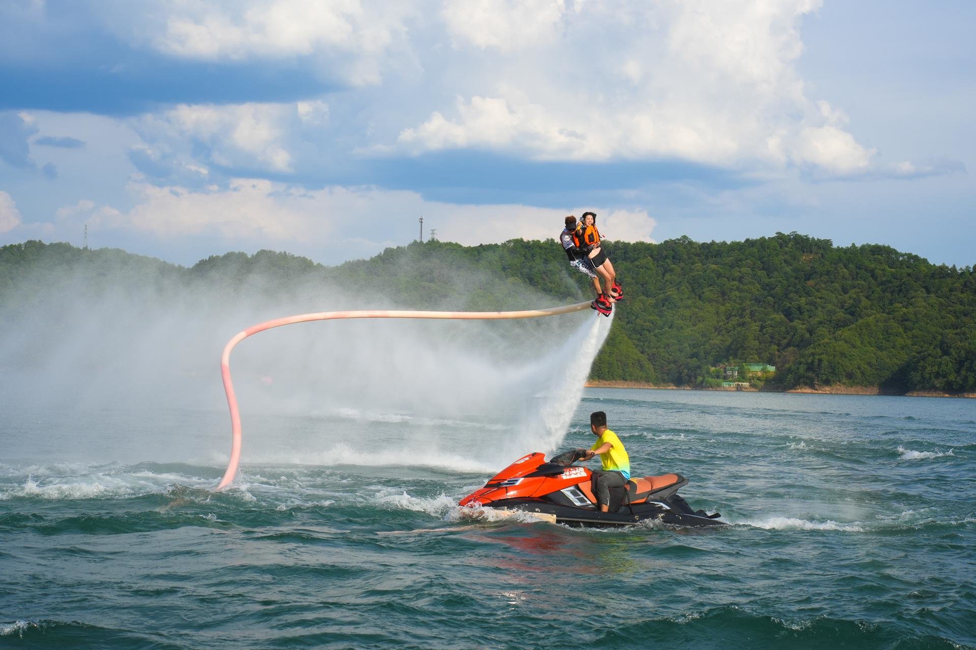 海天飞龙它使用的是喷射式悬浮飞行器的装置,这种装置通过向下喷射高压水柱的方式,将操控者托举在水面上,从而完成一些高难度花哨的动作。海天飞龙难度相对来说适中,但还是要有一些基础的水性。