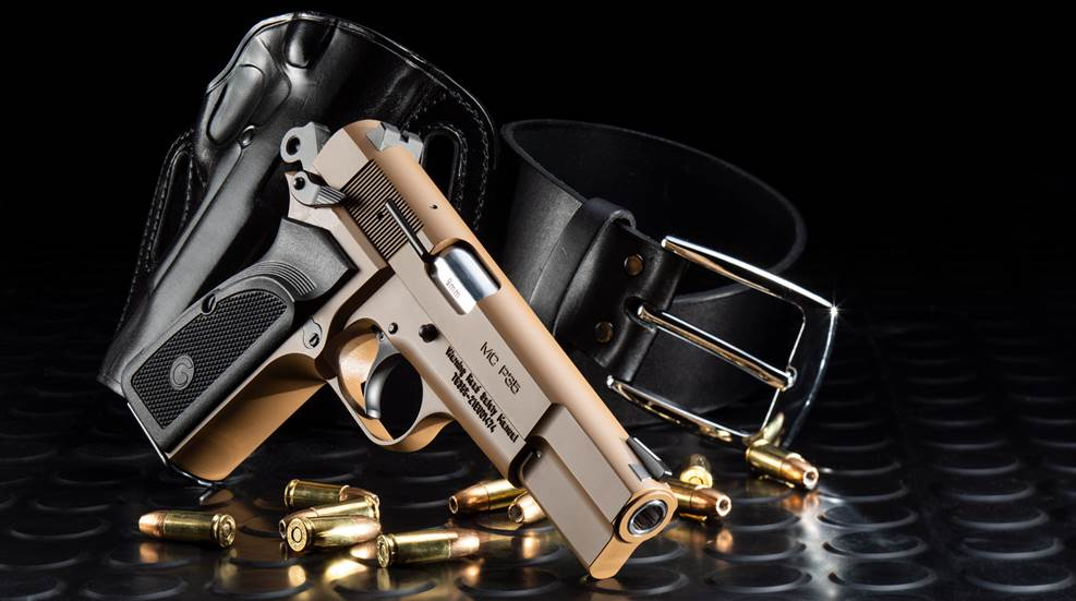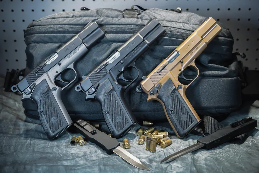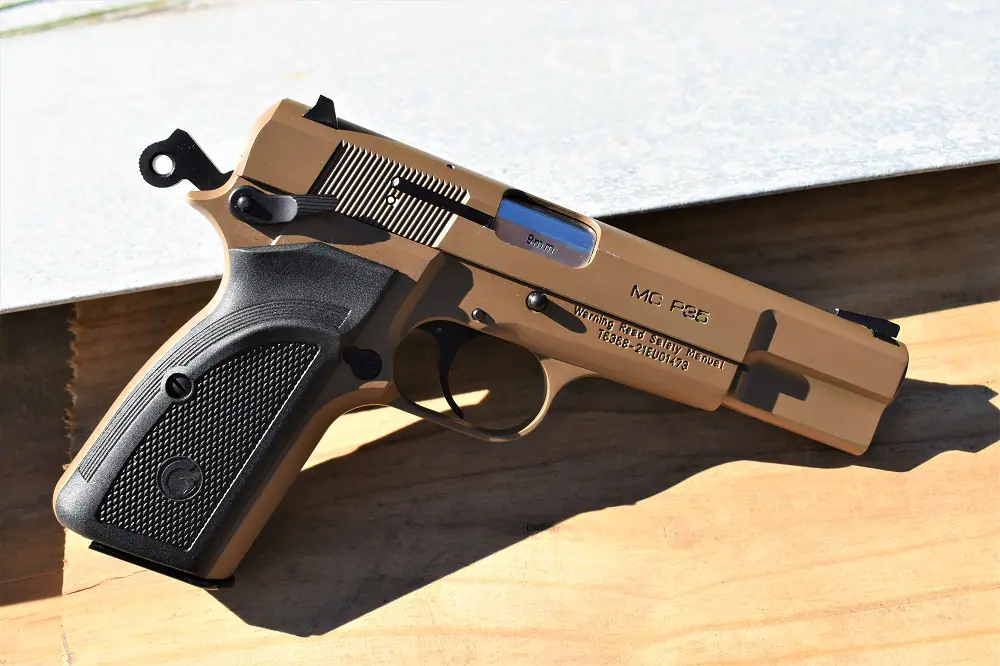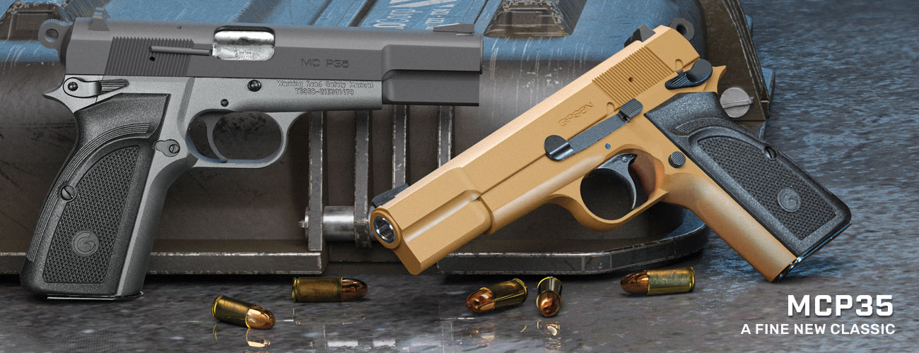 勃朗宁大威力手枪诞生于1935年,所以名字上,总是被叫做HP35,或者是P35,法国人也叫GP35。后来复刻的勃朗宁大威力手枪,很多都是带着P35的字样,比如春天公司的SA35,今儿给大家看下EAA的MCP35。