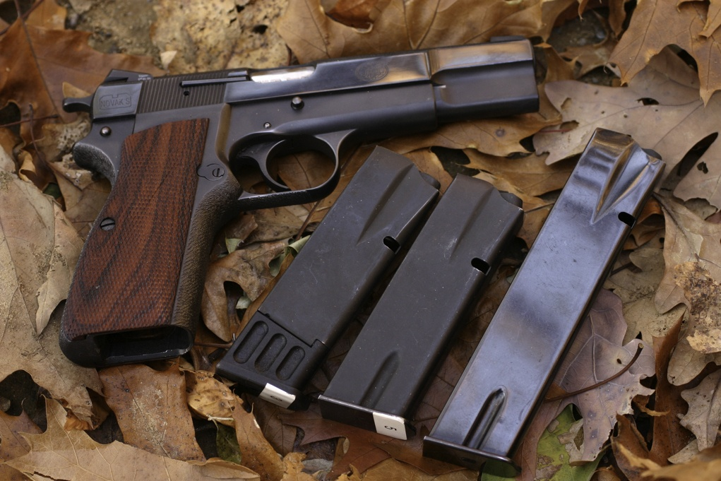 勃朗宁HP看上去比较像M1911,而且也是勃朗宁设计的,但是却是一种新的设计,这把枪没有M1911的枪管衬套,也没有连动的铰链,删除了握把保险,并不是M1911的变体。