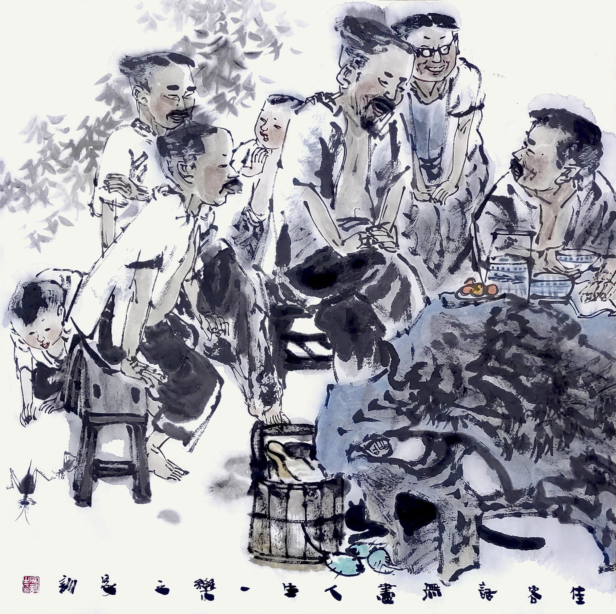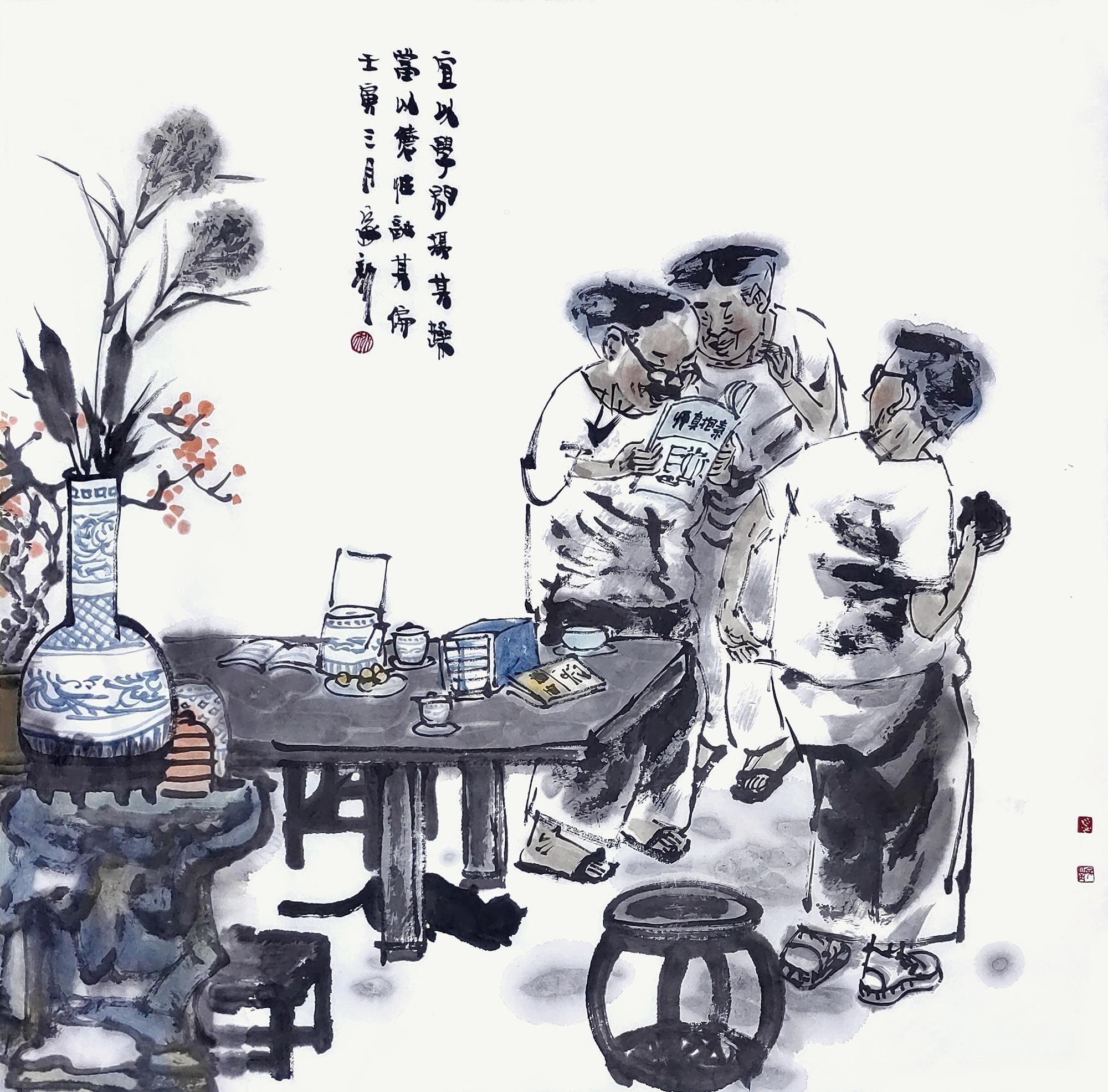 王家训国画《佳客话无尽,人生一乐之》
