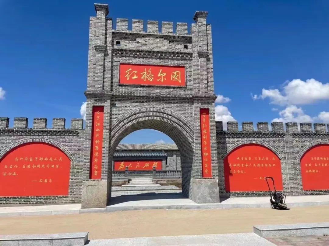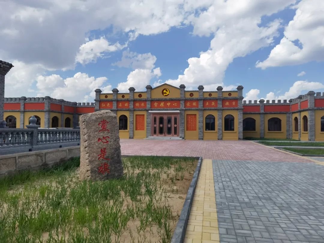 在任力书记的娓娓道来中,笔者一行来到了正在赶工的红格尔图红色教育基地,一座高大的门楼静静地矗立在蓝天下,门楼上的一副对联让人不由地肃然起敬!上联:红色引领谋福祉政通民富;下联:绿色发展搞建设粮阜物足。短短的二十二个字,凝聚了红格尔图镇党政班子成员的心血与希冀,魄力与创新。
