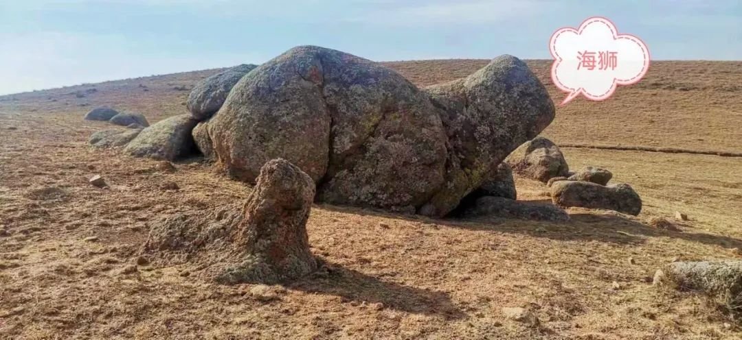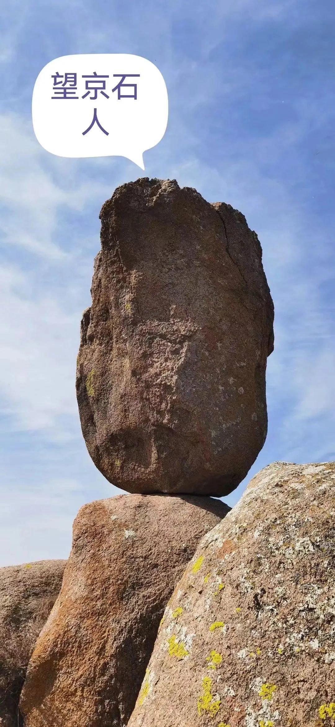 一进谷底,就有一个酷似猫头鹰的石墩石像在上方守卫瞭望,好像正在迎接进山的游客。想顺利地攀爬望京山,并没有明显可以用于直接行走的路径。为了能原路返回,只能从正面的谷底攀爬而上。极目苍穹之下,大大小小的玄武岩群张扬着它们的狂野和魅力,以凝重的色调和各异的姿态伫立着,一律虔诚地面朝西南北京方向,一尊酷似人像的奇石,面向北京,守望相助,这也便成了“望京山”之名的由来。