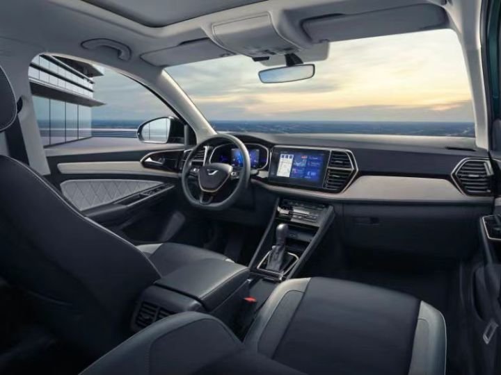 内饰上新捷达VS5高光悦享版车型中,原镀铬装饰条变化为蓝色实体漆装饰件,座椅采用同一蓝色滚边及缝线,共同强化时尚感觉,采用3D压印图案软质门板插件,提升精致感。VS5高光荣耀版车型则采用红黑双色搭配,凸显运动风格。