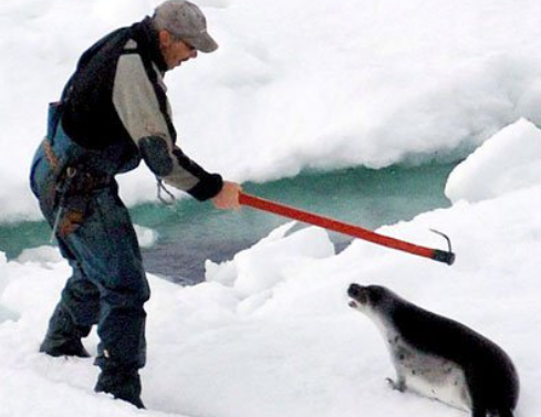 加拿大的海豹猎人每年要捕杀上万只头海豹,其中多数为不满三个月的小海豹。并且为了保证毛皮完好,他们甚至都不愿意给海豹来个痛快的,而是用棒子敲打海豹头部直至海豹死亡,就像悍匪那样粗鲁。