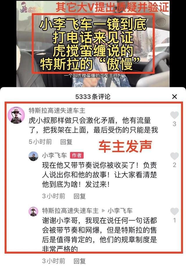 但事实却是,部分抖音大V和网友亲自拨打特斯拉门店电话验证后,电话有专门的人工中文服务,并非“虎小叔”所说的只提供英文服务,另外,当事特斯车主也表示,虎小叔那样做只会激化矛盾,他有流量了,把我架上去面,最后受伤的只能是我。