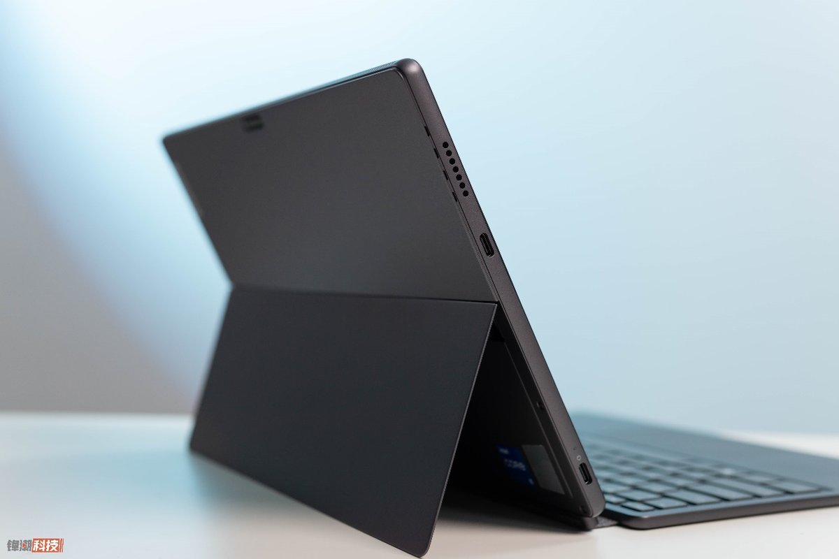 不过需要注意的是,功能性比较全面的代价是它比较厚,加上本体后的厚度能来到 15.3mm,已经完全是轻薄本的水准了;它的重量控制还是比较优秀的,键盘本身重量仅有 350g,搭配上本体,重量也不到 1.2kg,相对于 12 英寸的尺寸会偏重一些,也还算便携。