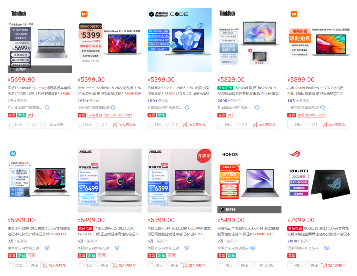 ▲非常建议一般用户选择搭载 AMD R7 6800H处理器的笔电
