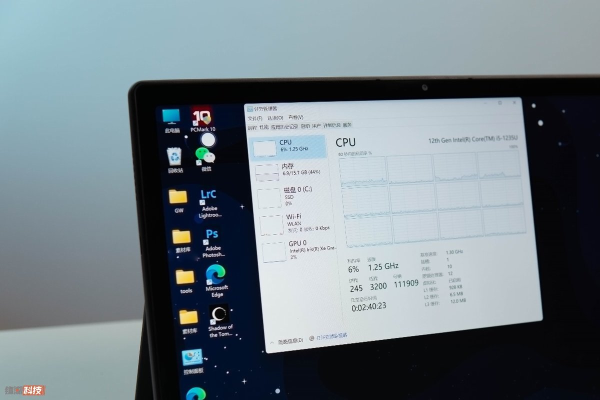 虽然说小新 Duet 在外观上略显“粗犷”了一些,但由此带来的性能提升同样也是非常显著的。它搭载了第十二代酷睿 i5-1235U 低压处理器,拥有 2 颗性能核+8 颗效能核的 10 核 12 线程配置,虽然是 12 代酷睿里最为孱弱的系列,但在二合一上还是很适用的。