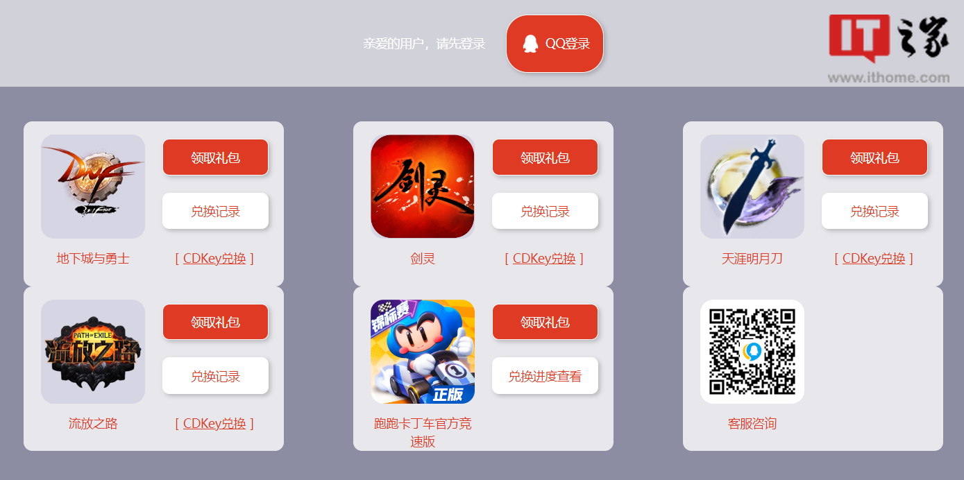 IT之家了解到,2022 年 08 月 29 日 11 点前购买过《冒险岛 2》产品并且账户里有代币留存的用户,可在补偿活动进行期间进入补偿页面根据自己的账号余额,领取《DNF》《天涯明月刀》《剑灵》《流放之路》《跑跑卡丁车官方竞速版》其中一个游戏的相关礼包。