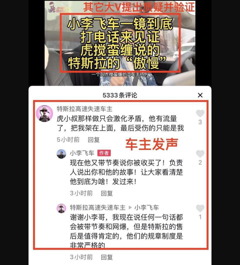 近日,抖音汽车领域大V“虎小叔说车”直播帮助特斯拉车主“维权”一事更是引发热议,当事车主发声表示:“特斯拉的售后是值得肯定的,他们的规章制度是非常严格的;虎小叔那样做只会激化矛盾,他有流量了,把我架在上面,最后受伤的只能是我。”