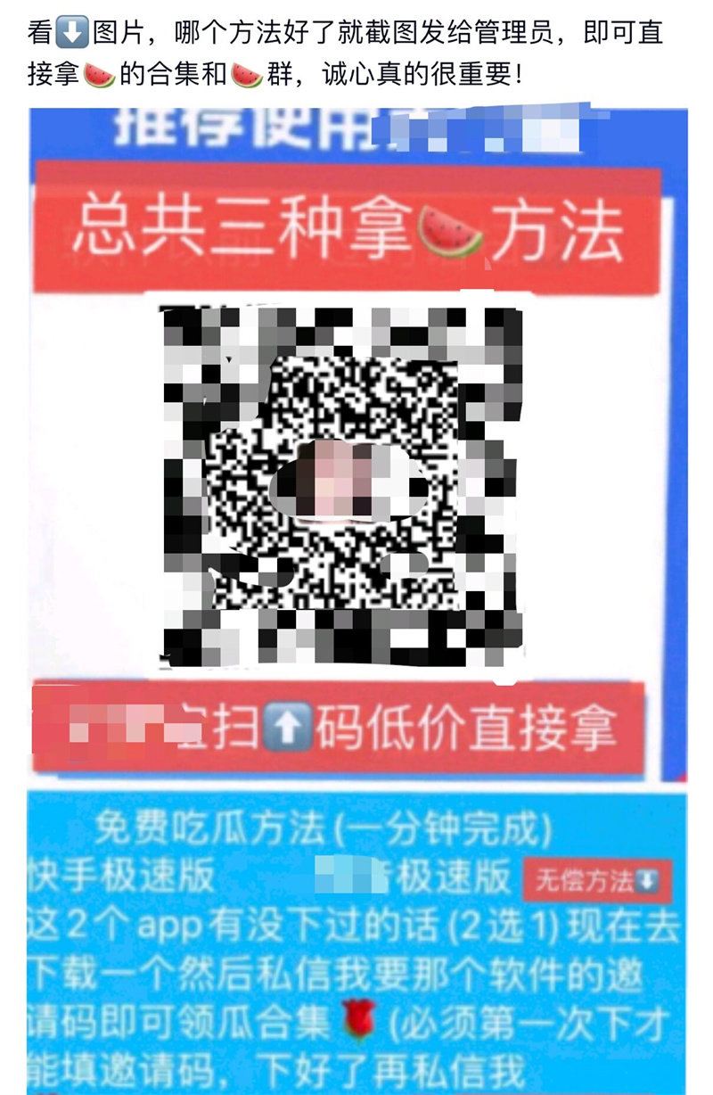 现代快报讯 网络时代,各种娱乐八卦经常能登上网络热搜,这些信息被网友称为“瓜”,成为网友茶余饭后热衷讨论的话题。借助着大家对于“吃瓜”的好奇心和热情,现代快报记者发现,社交平台上催生了各种“吃瓜”群聊,号称能第一时间吃到“热瓜”。所谓的“瓜”,只是群聊组织者获取利益的工具,进群要扫码付款,而分享的信息则暗藏色情内容。不过“吃瓜”需谨慎,近日,上海有一名群主在群内发消息“吃瓜”,被判赔钱道歉。