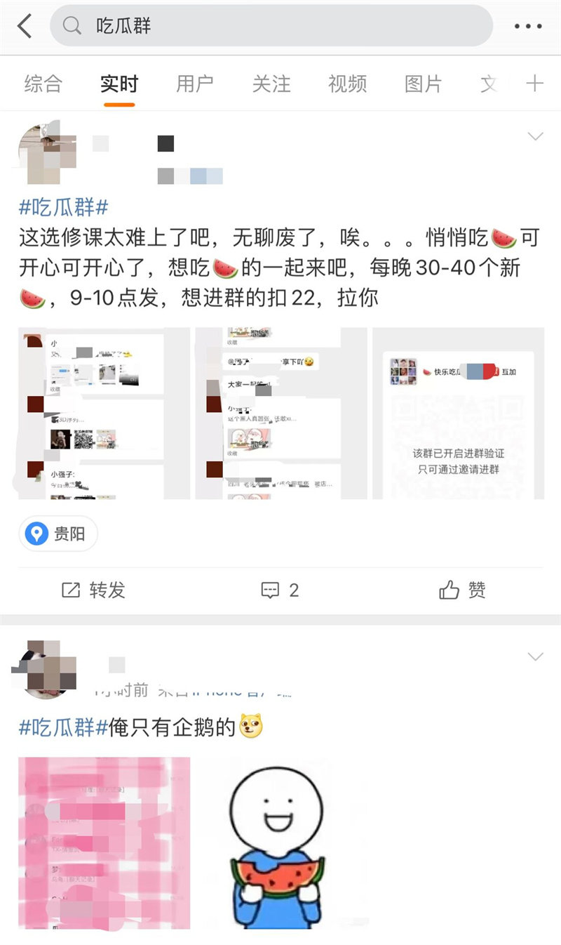 △ 社交平台上关于“吃瓜”群的讨论