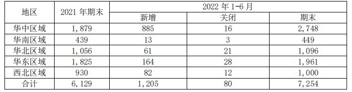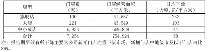 其中,直营店方面,截至2022年6月30日,公司共有直营门店7,254家门店,经营效率如下: