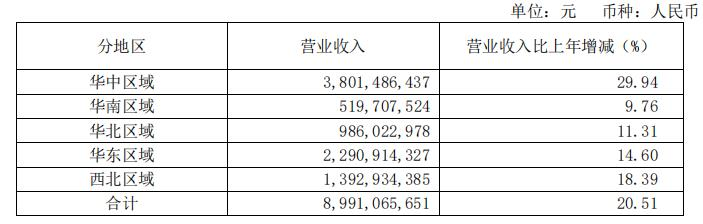注:华中区域包括:湖南省、湖北省、江西省、河南省;