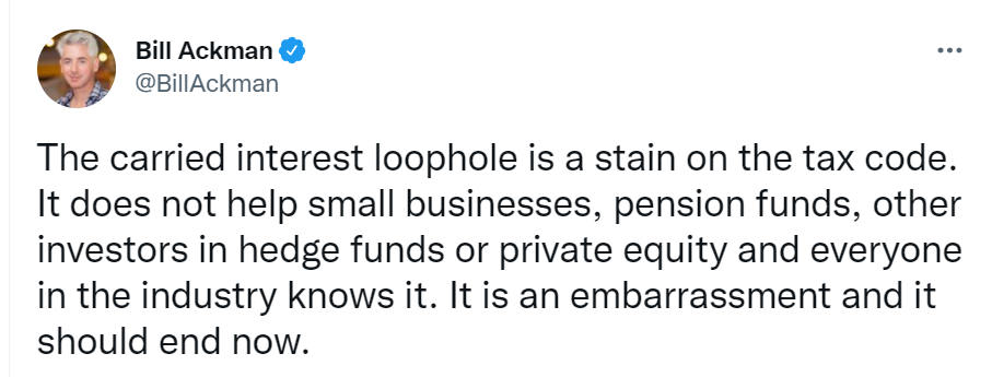 “附带权益漏洞是税法上的污点” .Twitter