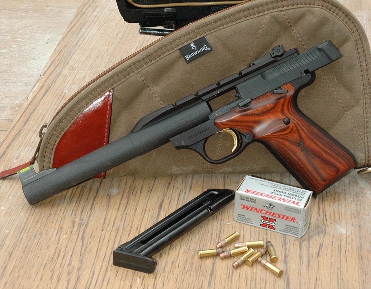 现代的.22手枪数量非常多,在一些合法持枪的国家里,.22枪械都是作为初学者的入门枪械,再就是一些孩子的玩具类。而.22手枪里面,历史最悠久、型号数量最多的,就是美国勃朗宁公司的巴克马克手枪(Buck Mark)。从1985年诞生到现在,一共有36个型号,而且都是在售。