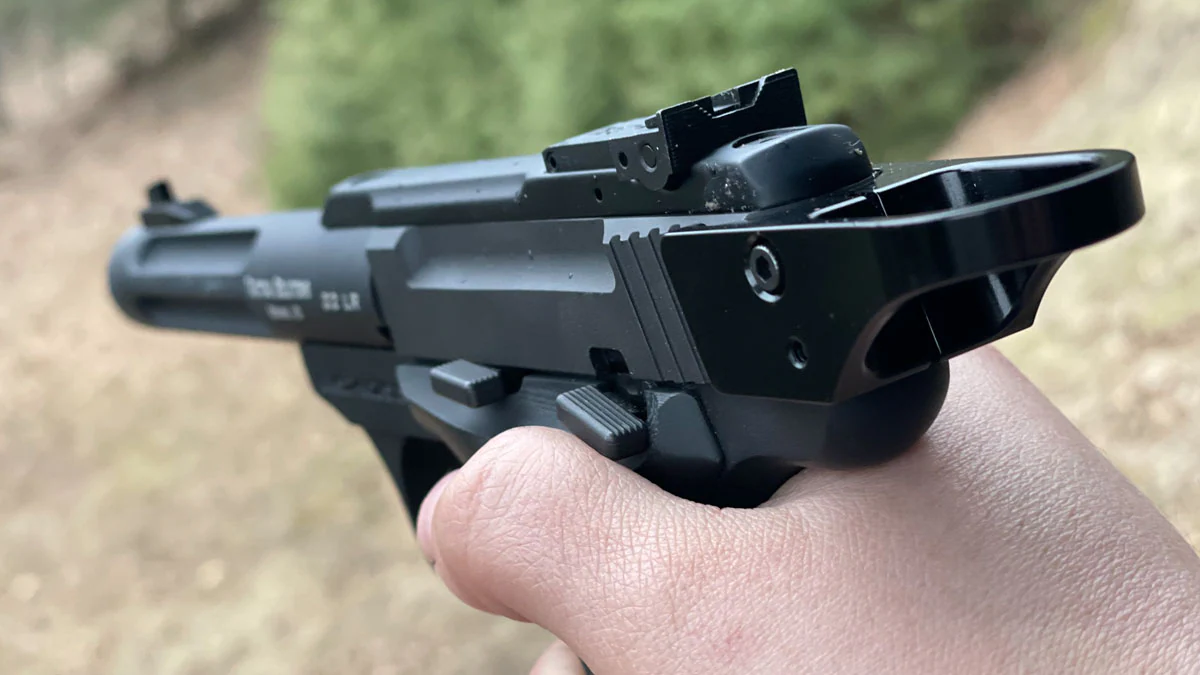 这样做的好处是,可以让燃气驱动的重量大幅降低,毕竟那个年代用工程塑料的枪还是比较少,这样设计自动机驱动会更便捷,同时也非常适合排障,但是这样做的话,会导致枪内部密封性并不好,但是.22手枪作为运动枪、启蒙枪,并不作为军用、警用,这方面其实可以不用那么在意,毕竟没人愿意拿着一把.22手枪出去打仗。