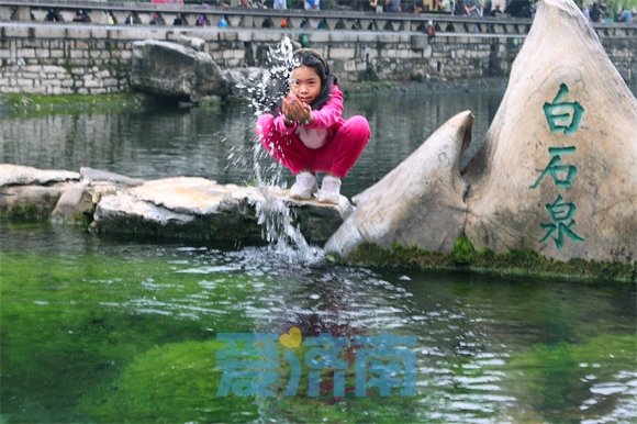 8月30日,济南新七十二名泉之一的白石泉边,赏泉观景的游人络绎不绝。
