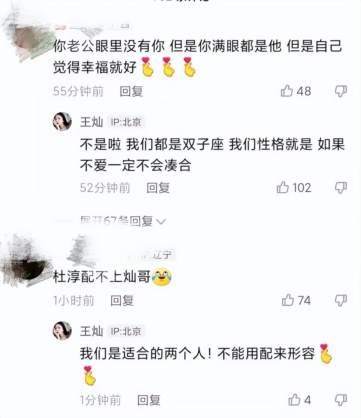 对此,王灿直言自己和杜淳都是双子座,两人非常适合,如果不爱一定不会凑合。由此可见,王灿目前还是非常在意外界对她和杜淳是否般配的评价。