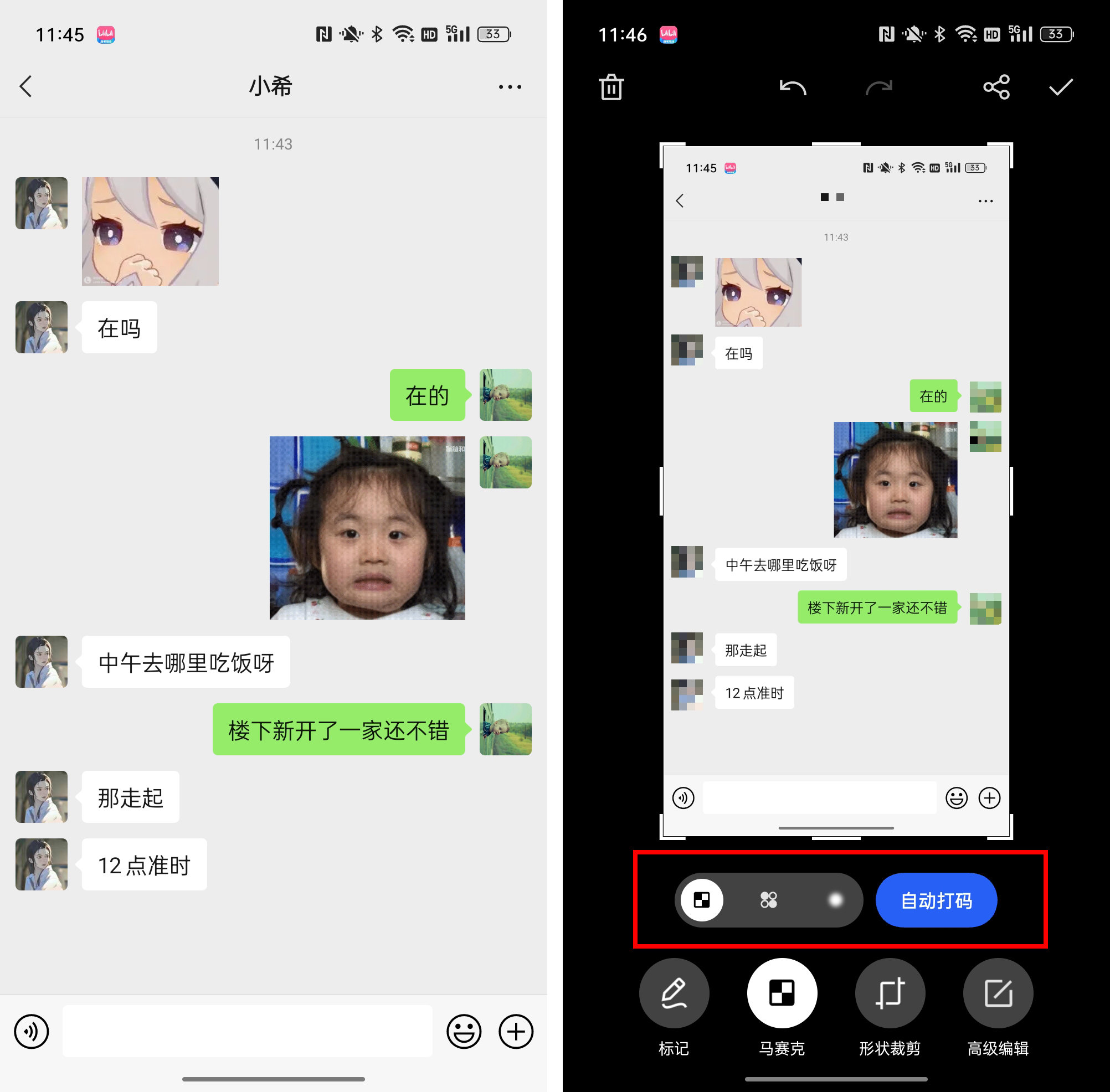 (自动打码前后对比)