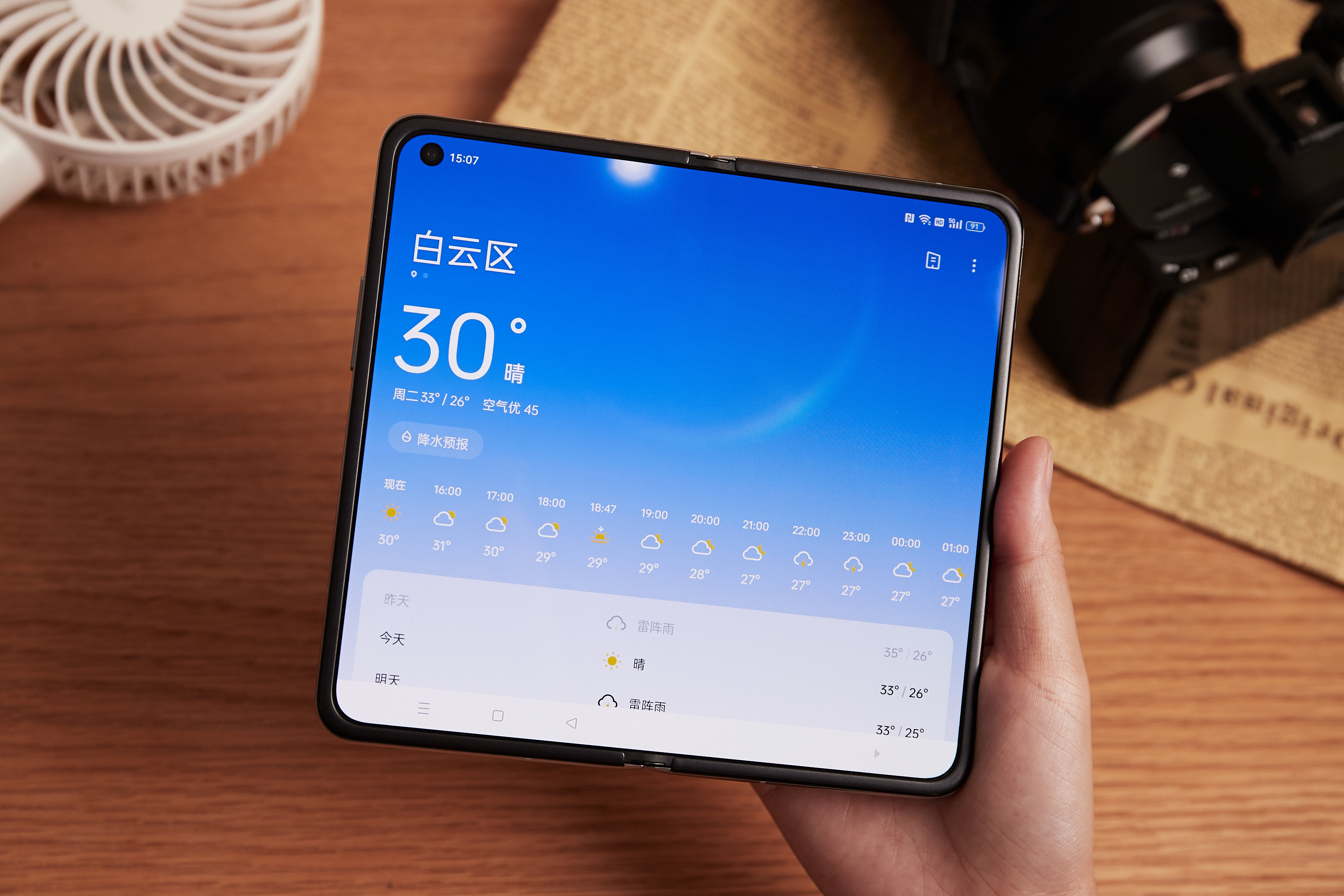 官方称新的ColorOS 13系统设计为“水生”设计,顾名思义,即在系统各处设计上融入了更多“海洋”蓝色元素,不仅象征着更沉稳,也象征着折叠屏“大屏”拥有无限的开发可能。OPPO Find N升级到了ColorOS 13系统,能明显感知到系统的主体色调有所调整,由原有的绿色基调变成蓝色基调,相关系统APP也做了相应的调整。比如打开⌈天气⌋App,晴天配上高饱和度的蓝调,更容易让用户直观感受到天气变化!而且在细节上,系统App调色从顶部的蓝过渡到一周天气预览的白,直观而不失层次感!