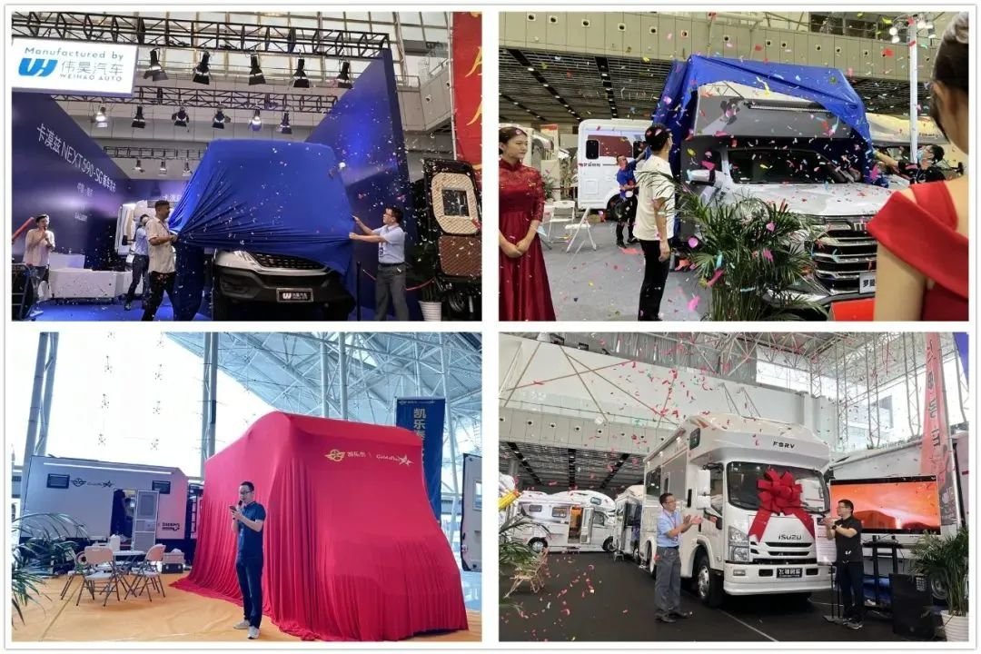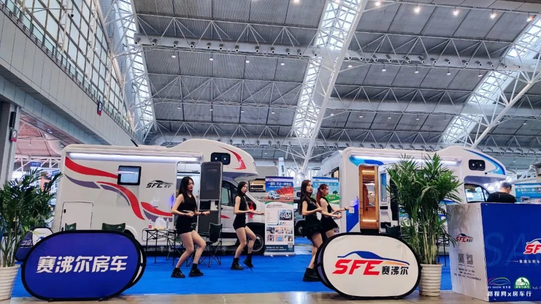 展会开展当天还有伟昊房车、戴德房车、罗曼特斯房车、戈士达房车、飞神房车、览众房车等知名房车品牌/企业携诸多新款房车在现场举行了新车首发仪式,新车靓丽的风姿,加上美女模特的精彩舞蹈表演,吸引了不少参展观众和媒体朋友的围观驻足。