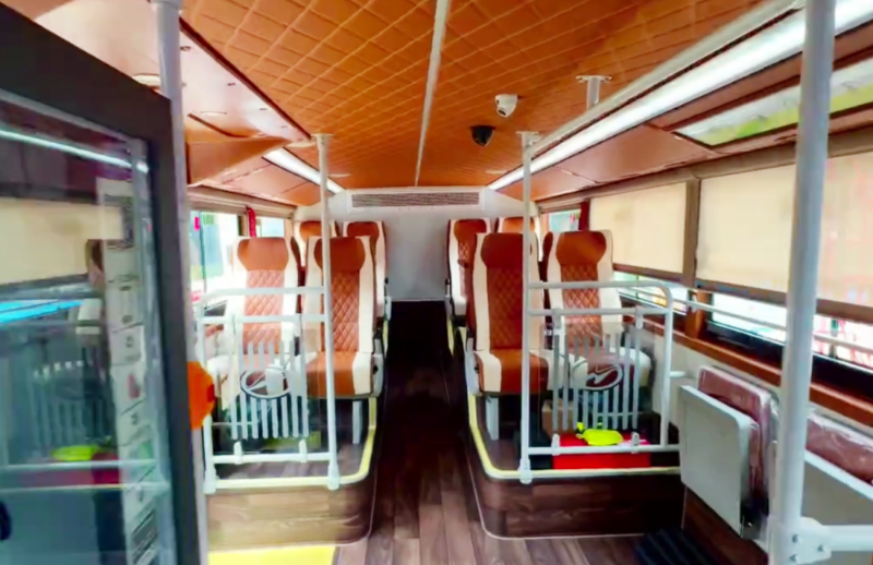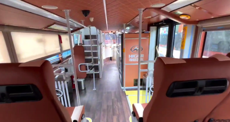 尹振表示,这也是海格客车技术团队在历经前期市场调研、与客户充分沟通下,为客户量身定制的方案,并致力将特色城市文化和城市风景元素融入到交通载体中,让车辆不仅外观别致,车内也“暗藏乾坤”,别具一格。首先车辆档次提升,豪华质感呈现上要到位,体现出城市形象;第二,从整体空间布局到内饰内在舒适质感、座椅人性关怀设计,都要进行细化考量,让乘客的乘坐舒适度和观光体验感更加不一样。此外,观光巴士还增设了饮水机、USB充电接口等各种便利化设施,从细节出发进一步提升乘坐体验。