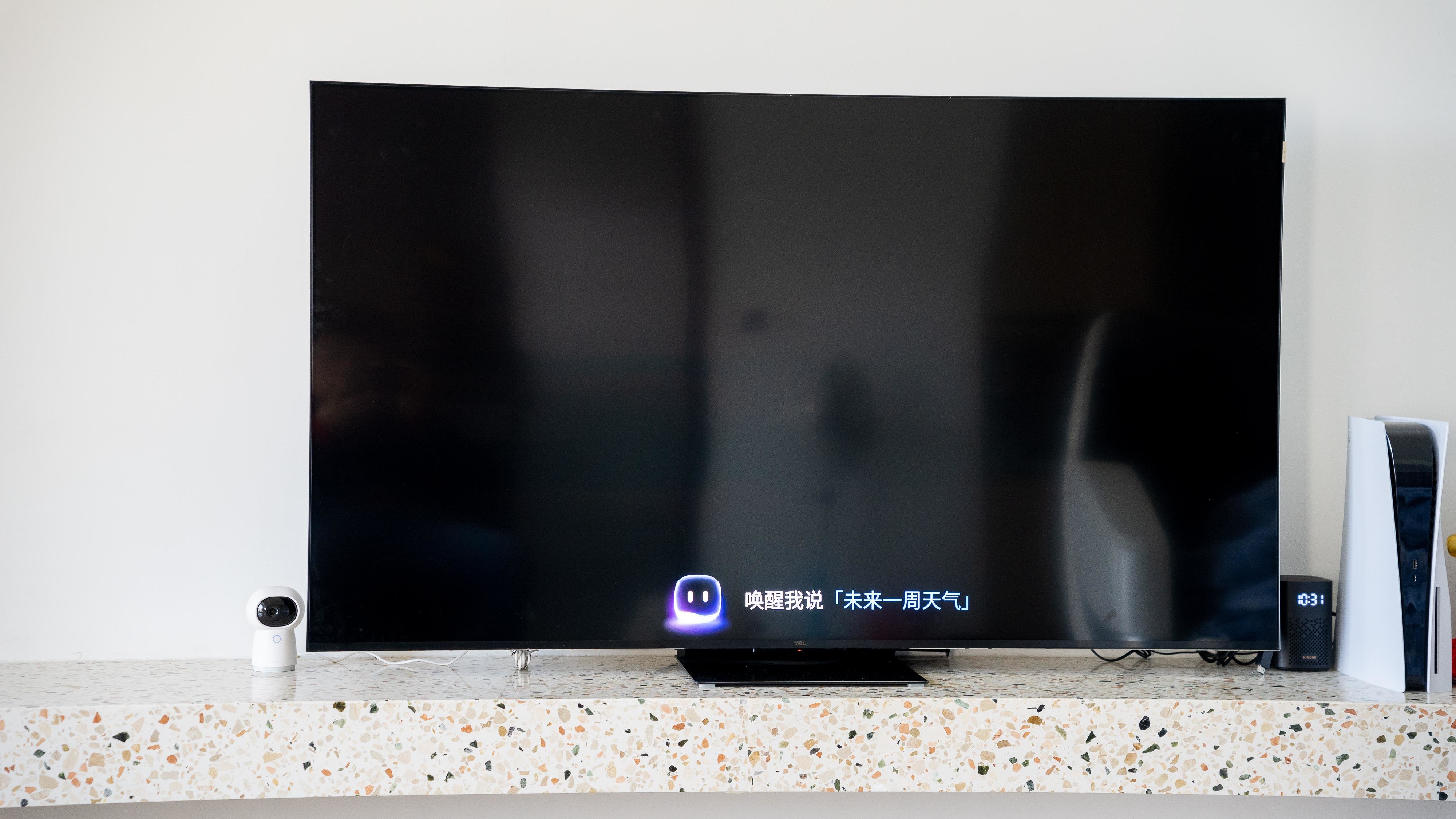 外观方面我首先被TCL的悬浮底座吸引,因为一般电视多是在两侧安装支架使用。现在随着电视尺寸越来越大如果不选择壁挂的方式对于电视柜的尺寸有较高要求,比如75英寸电视长边就达到了166.03cm,而85英寸电视长边更是要达到188.16cm,这样的尺寸如果还是两侧支架的设计你就至少需要一个200cm的超大电视柜才行,而TCL采用悬浮底座设计,减小了TCL X11电视对于电视柜的压力,而且看上去好像X11电视悬浮在电视柜上一样。