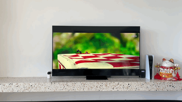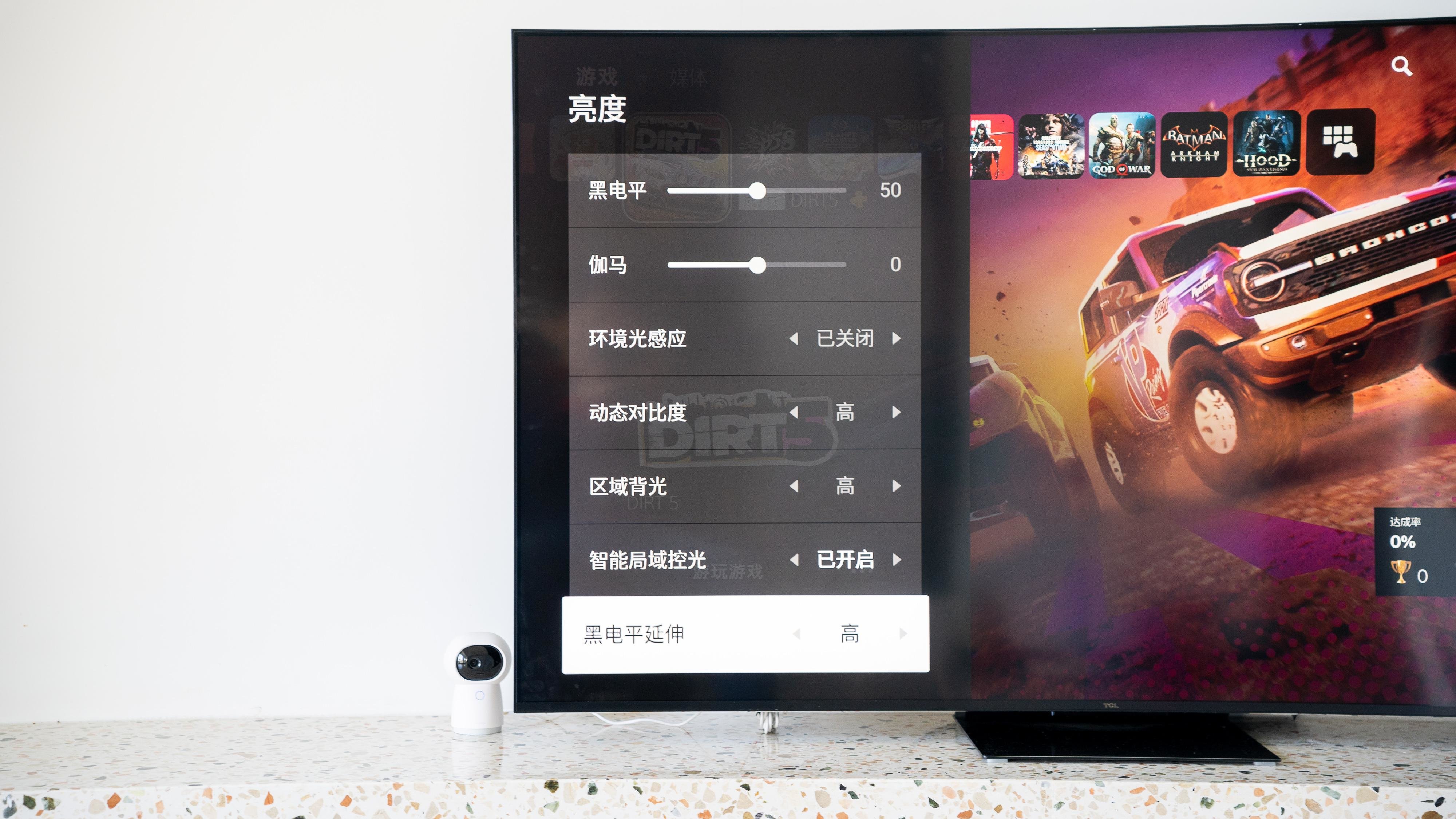 日常我玩得多的赛车游戏是「DIRT 5」,这款游戏还支持120Hz刷新的游戏,配合X11所带来的沉浸感是原先在小尺寸的电竞显示器上从未体验到的。此外在「DIRT 5」这样画面色彩绚丽,大光比的场景下游戏你更可以充分享受优秀画质带来的畅快体验,赛道边观众与树木明暗细节的对比,远处的白云高光的细节都让我更享受此刻的游戏体验。如果你也是发烧级的赛车游戏爱好者,可以首选X11 85英寸的版本,因为在这个尺寸上玩赛车游戏,即便你坐在三五米外游戏也可以体验到堪比真实驾驶赛车的感受。