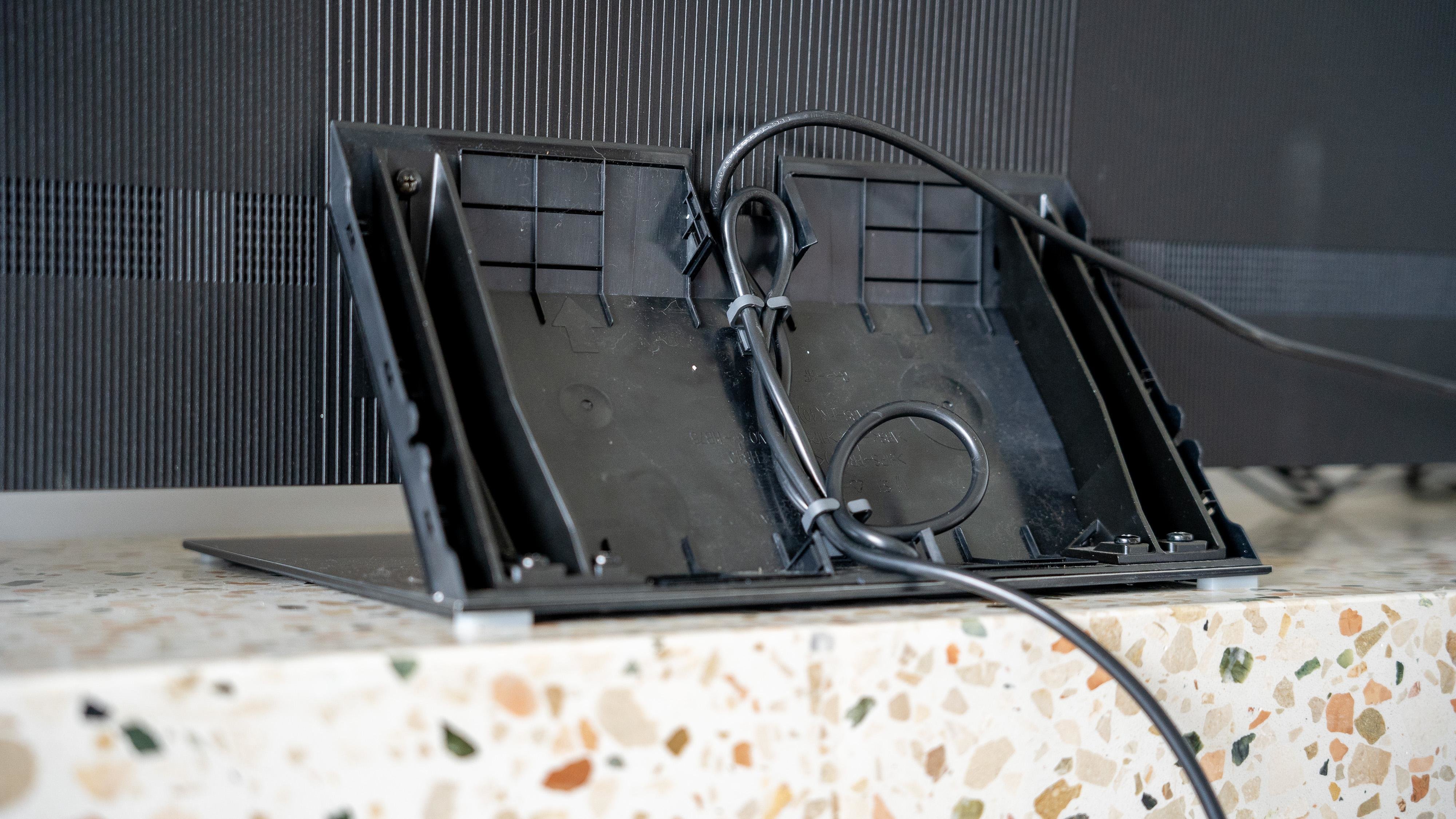 悬浮底座别后设计了理线槽,方便隐藏电视杂乱的线材。