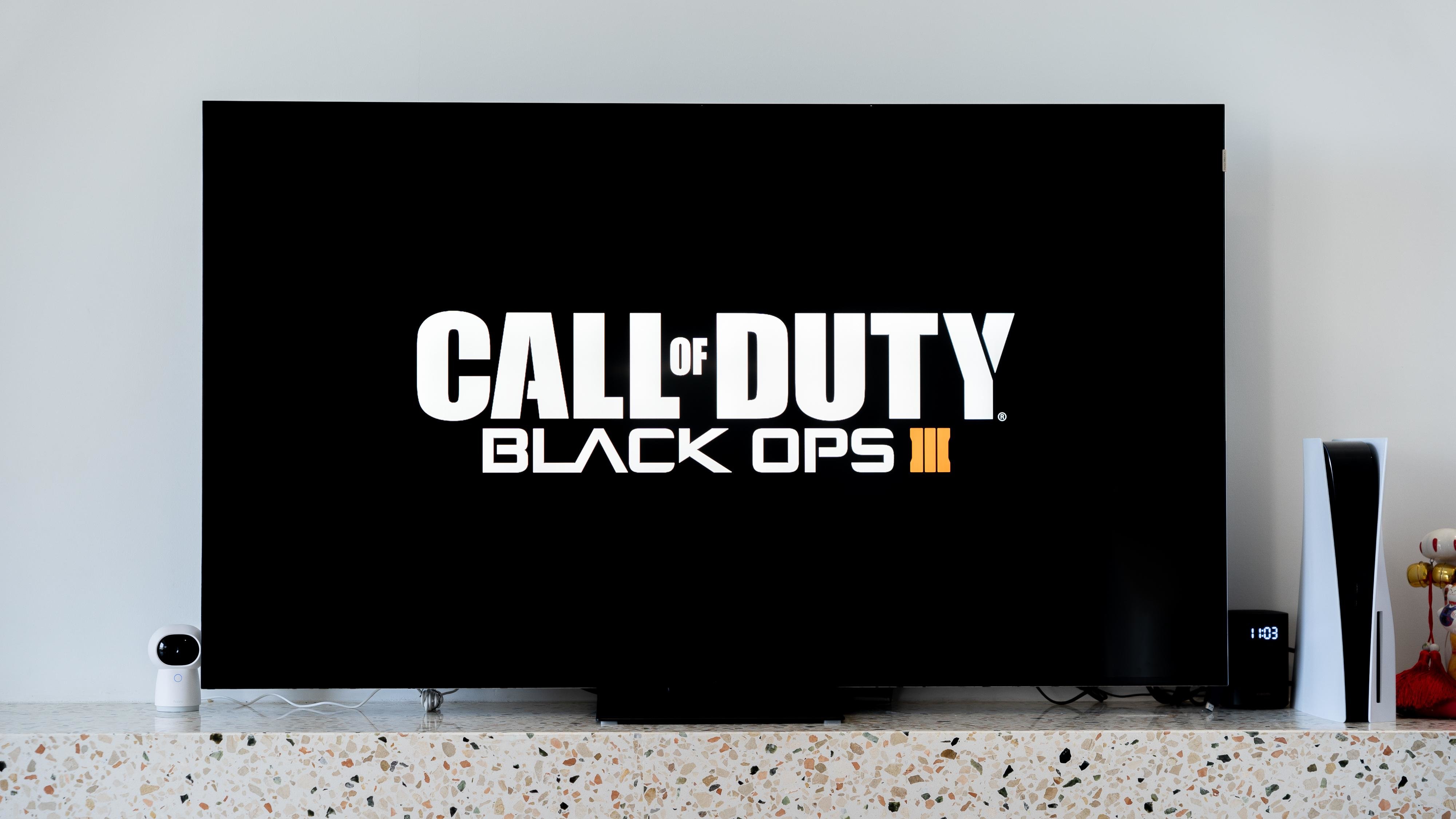 QD-Mini LED屏幕的意义在除了可以黑得下去,更可以亮起来。这样才能保证还原更真实的色彩,从而展示更多的画面细节。让玩家在更大尺寸的电视上可以更沉浸地享受游戏的快感。画质细节方面从PS5打开「CALL OF DUTY BLACK OPS III」(使命召唤:黑色行动3)的开始画面也可以看出,在精准的控光下,纯黑的底色上白色字体的边缘基本没有光晕。