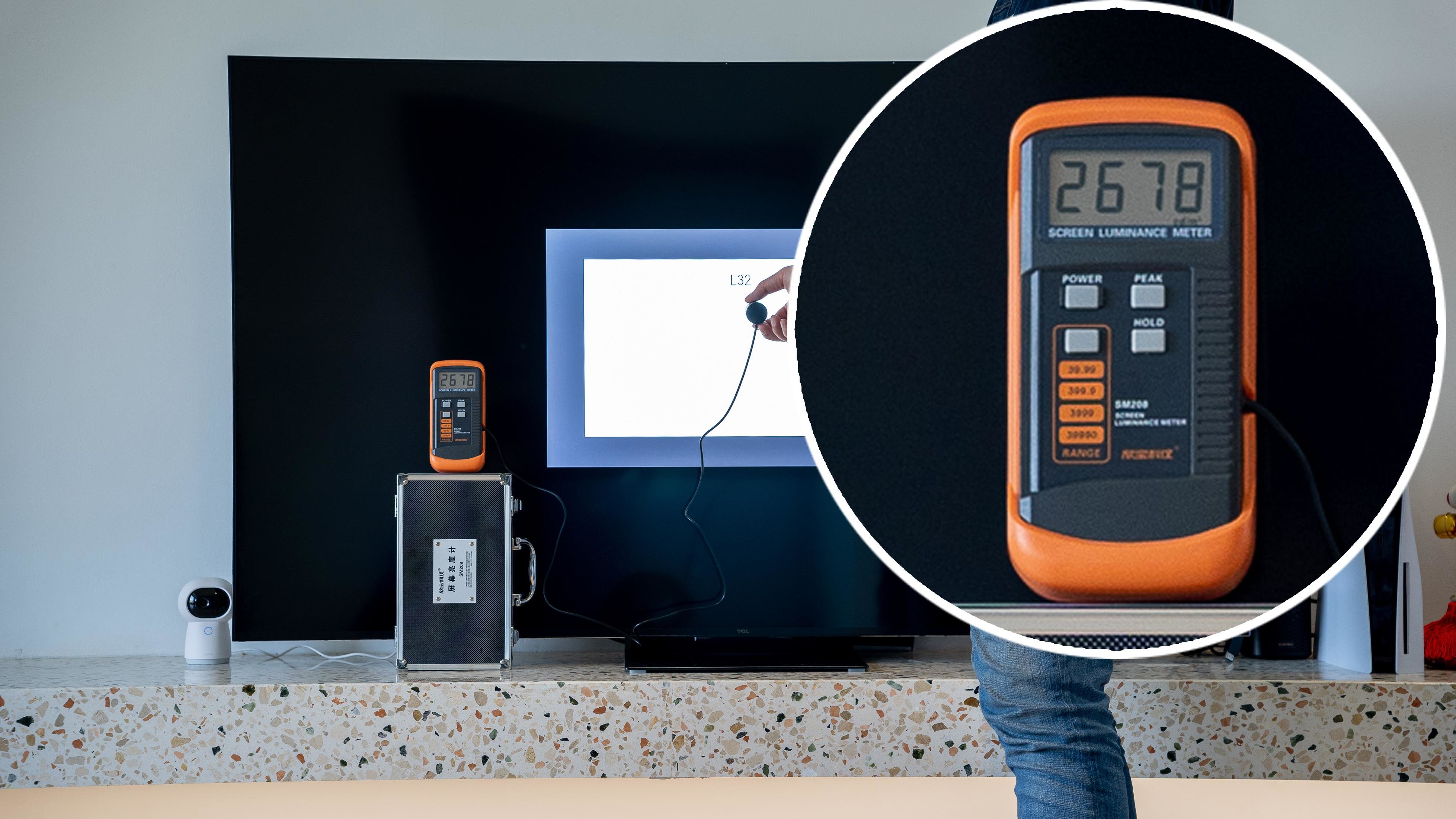 而在HDR峰值亮度测试中也可以看到,在开启HDR模式测试得到的峰值亮度甚至达到了2678nit的超高亮度。当然这个亮度只是峰值亮度,这个亮度会随着时间逐渐降低。这也是出于安全考虑,相比OLED会发生屏幕烧屏,从而影响屏幕寿命的问题。QD-Mini LED在这方面做得就很好,6万小时的屏幕寿命也是OLED屏幕无法提供了。