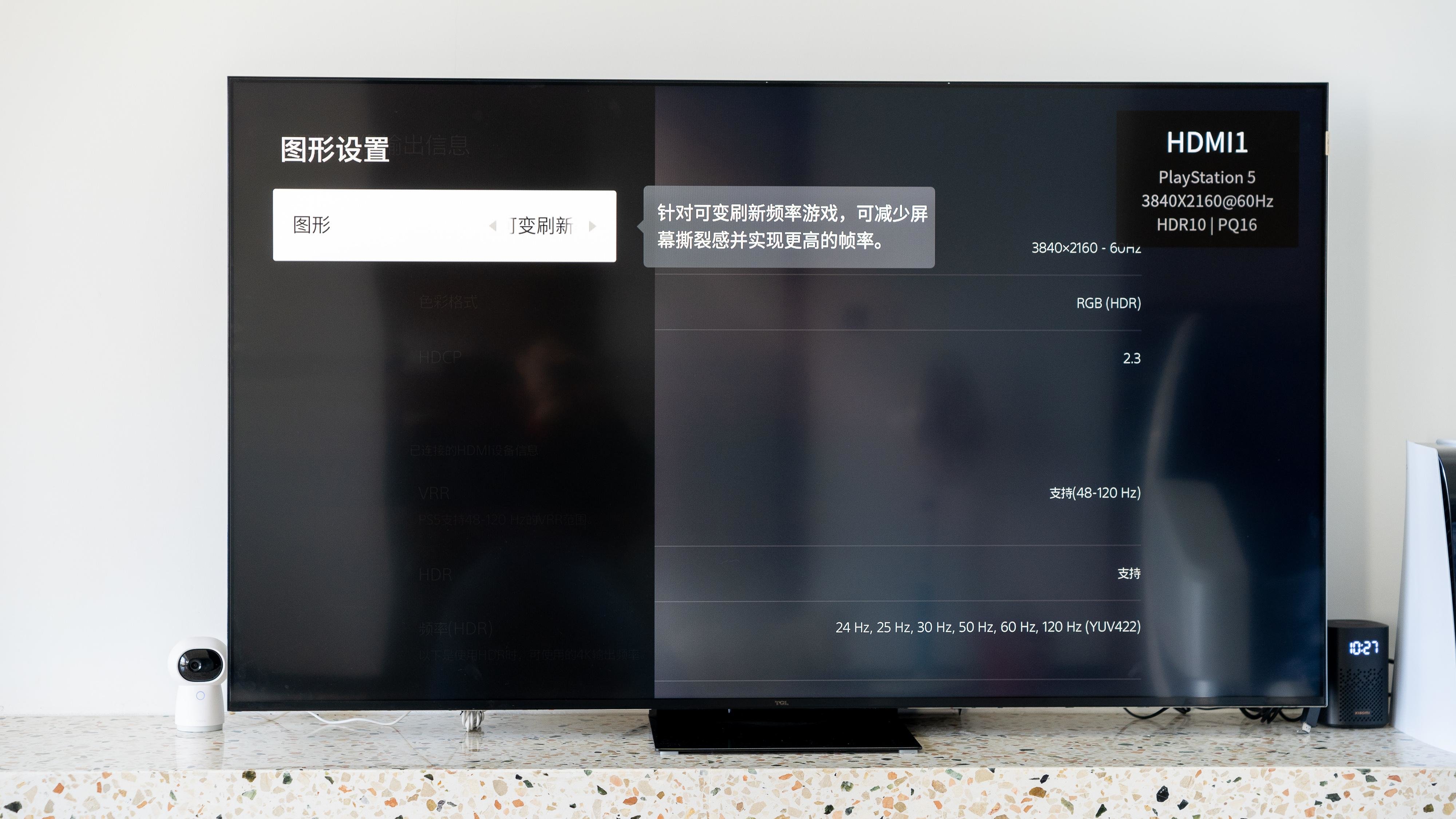 开启之后就可以看到TCL X11连接好PS5之后已经可以正常在4K 120Hz下运行。