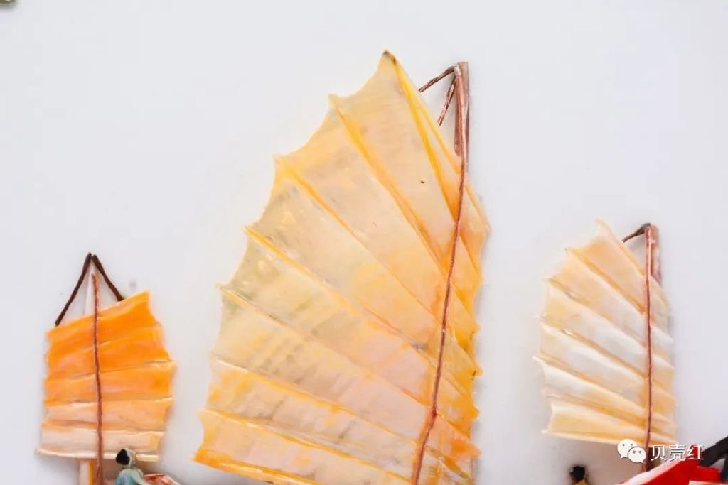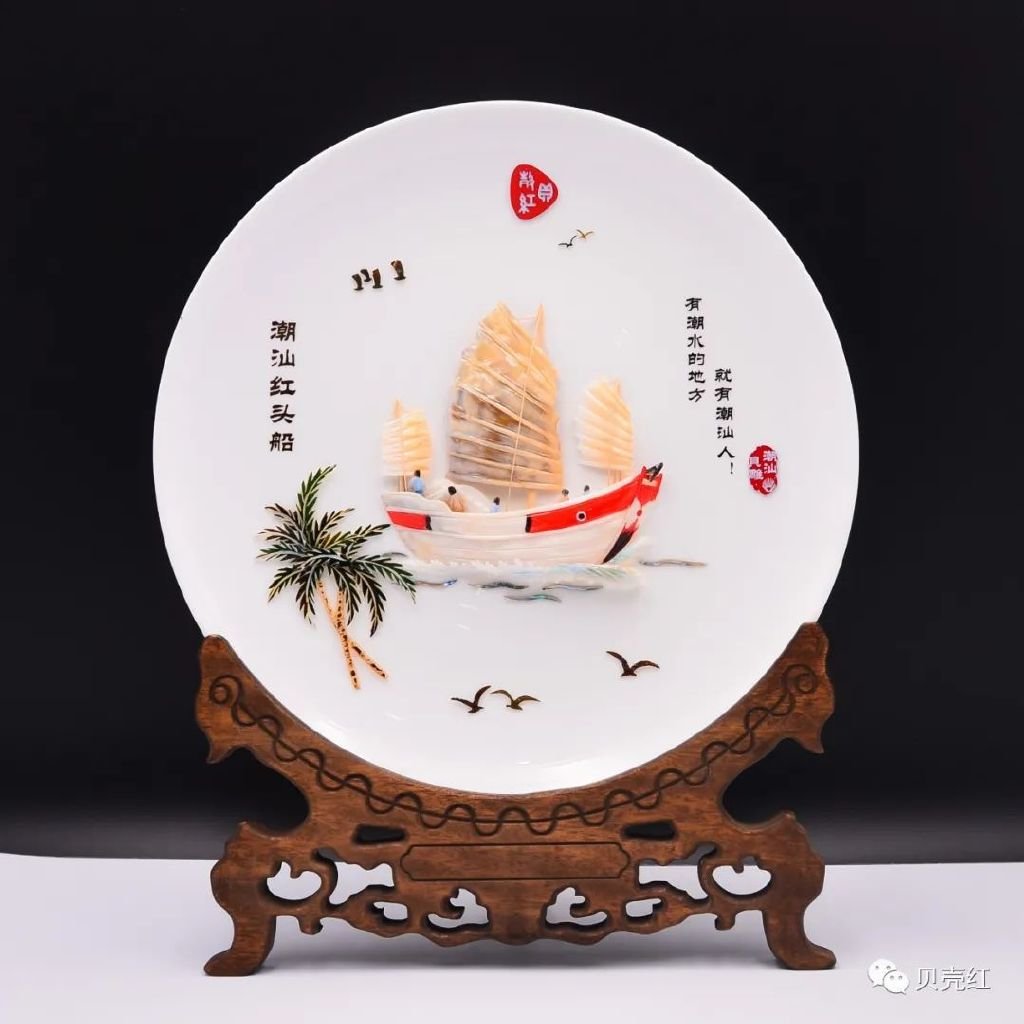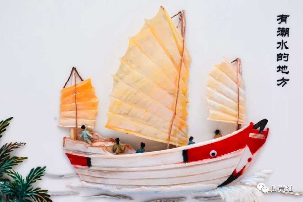 作品精选纯天然原色贝壳,手工雕刻、打磨,生动描绘了红头船迎风破浪的画面,奋斗拼搏、抱团发展的红头船精神已经成为潮汕人的重要和鲜明特征。