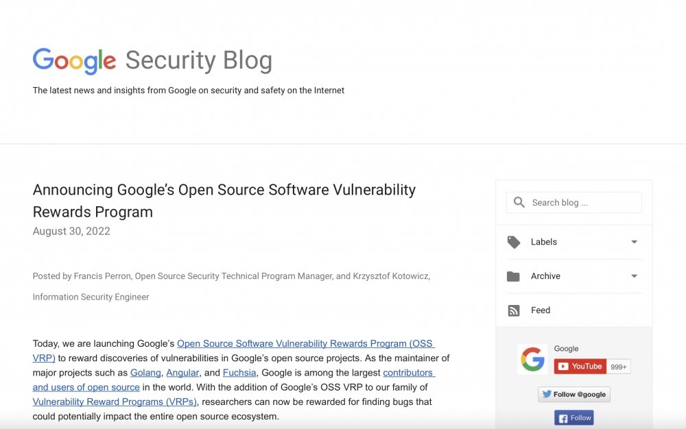 Google指出,OSS VRP是为了解决越来越普遍的供应链安全问题,去年锁定开源代码供应链的攻击行动增加了650%,Codecov与Log4j漏洞更彰显出开源代码的单一漏洞可能带来的毁灭性。此外,OSS VRP也是Google履行100亿美元安全基金承诺的一环。