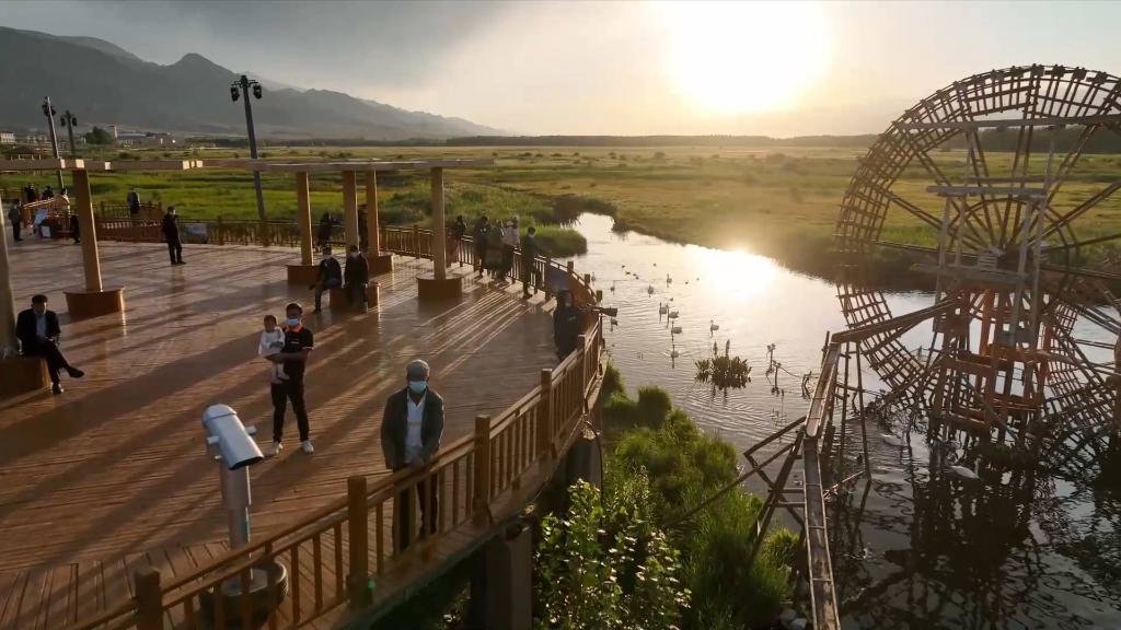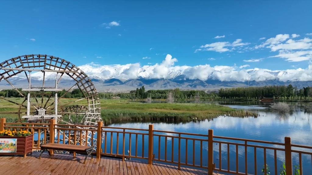 位于新疆西部的温泉县海拔较高且三面环山,城边即是5.8万亩的博尔塔拉河国家湿地公园,形成“半边湿地半边城”的自然景观。