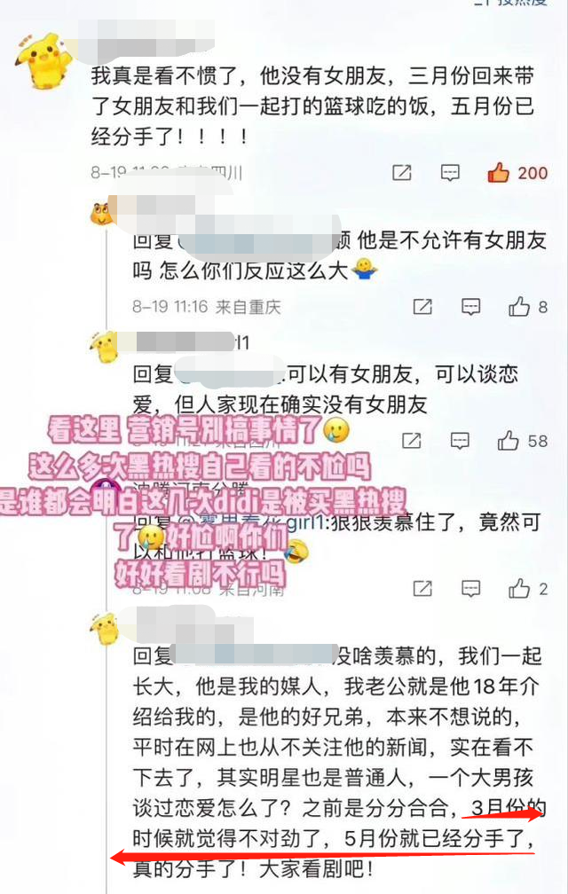 为了担心恋情传闻影响王鹤棣吸粉,粉丝们还在到处澄清称他与女友已经分手了,还有知情人跳出来证明此事,称两人“之前是分分合合,3月份的时候就不对劲了,5月份的时候就分手了”。可按照媒体这次放出的3月底拍到的视频状态来看,这位知情人的话也未必可信。