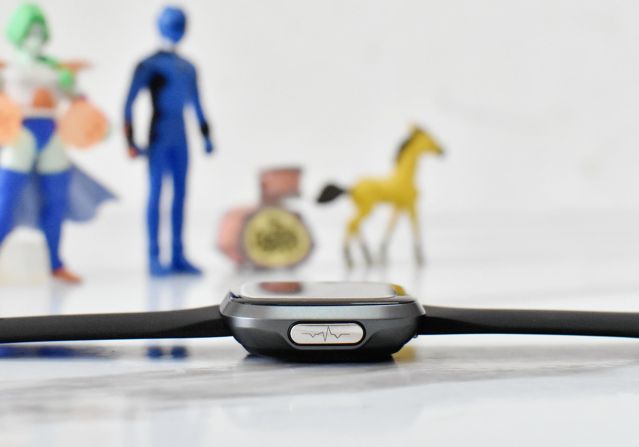 上手第一眼对手表的外观是相当满意的,产品颜色有雾色黑、海水蓝、银河白三种配色可选,个人偏向于经典稳重的黑色款,当然其余两款配色更时尚具有活力。方形表盘的外观设计,机身框架为金属材质,在表带的材质上采用既亲肤又能兼顾运动特性的硅胶表带,亲肤、排汗的设计,夏季的时候佩戴,这样就非常的nice了。
